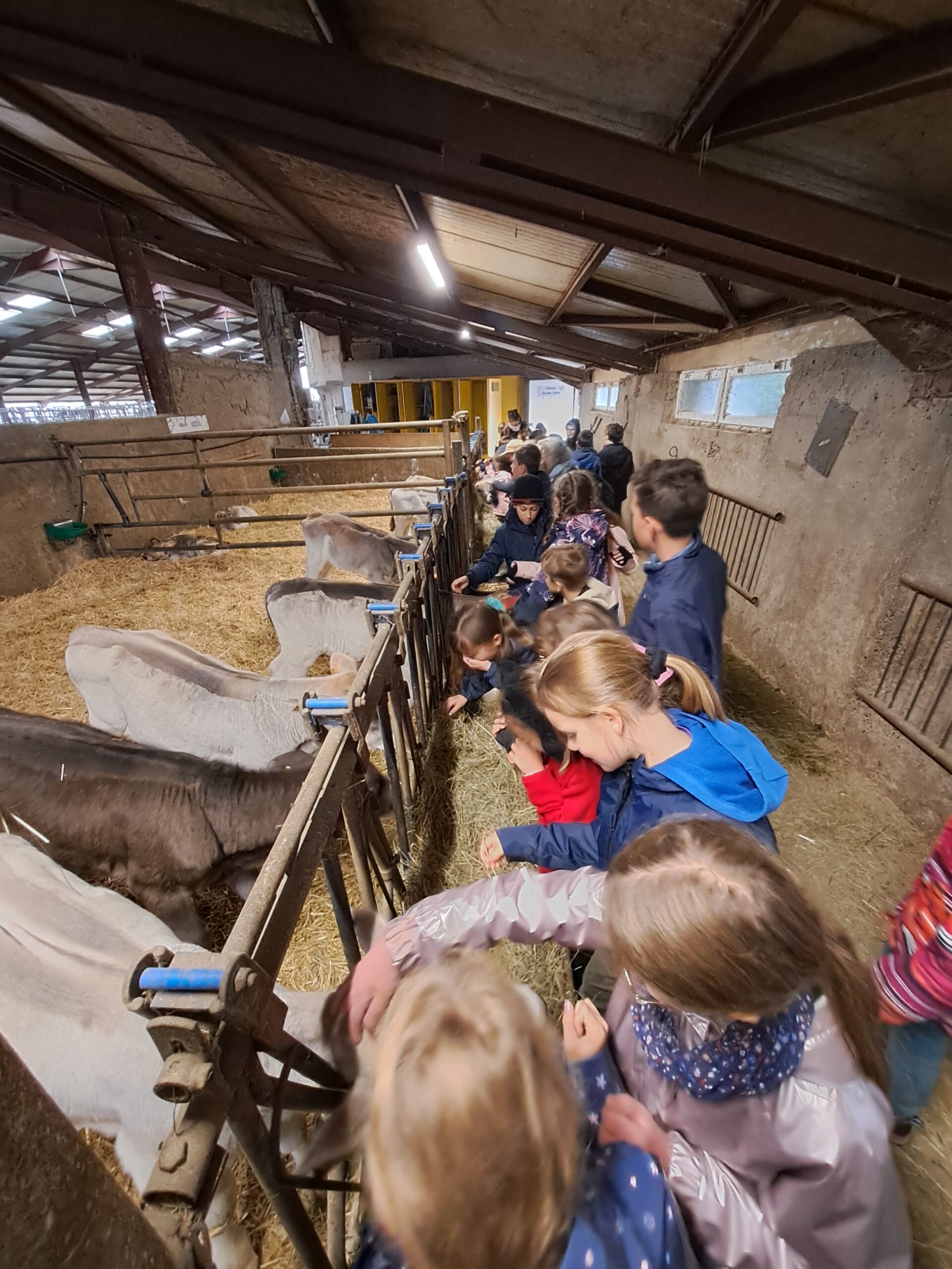 À la ferme, nous avons vu de belles vaches avec de beaux yeux, des veaux, des génisses, etc.