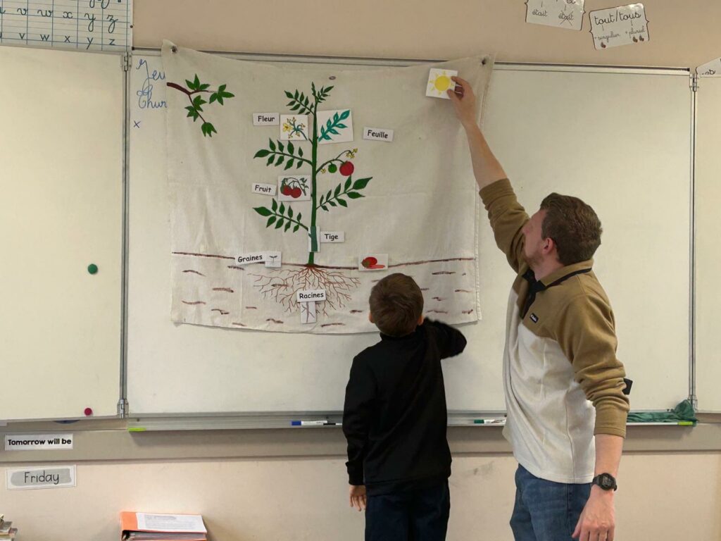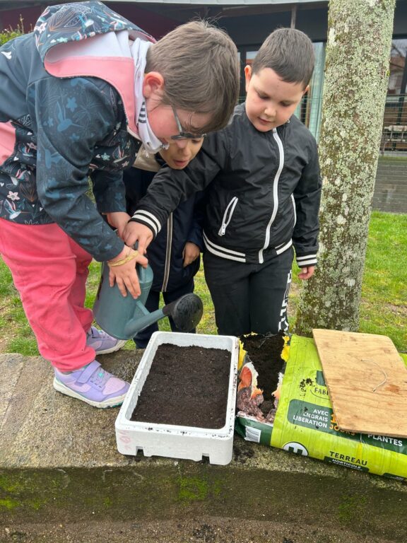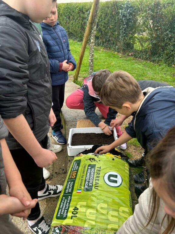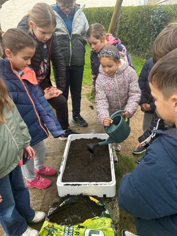 La classe de CE2/CM1 a bénéficié d’une matinée très riche au cours de laquelle les enfants ont observé toutes les parties d’une plante. Ils ont ensuite réalisé des semis d’œillets d’inde et des boutures de thym. Enfin, ils ont révisé le cycle naturel de l’eau et compris la circulation de l’eau dans nos maisons.