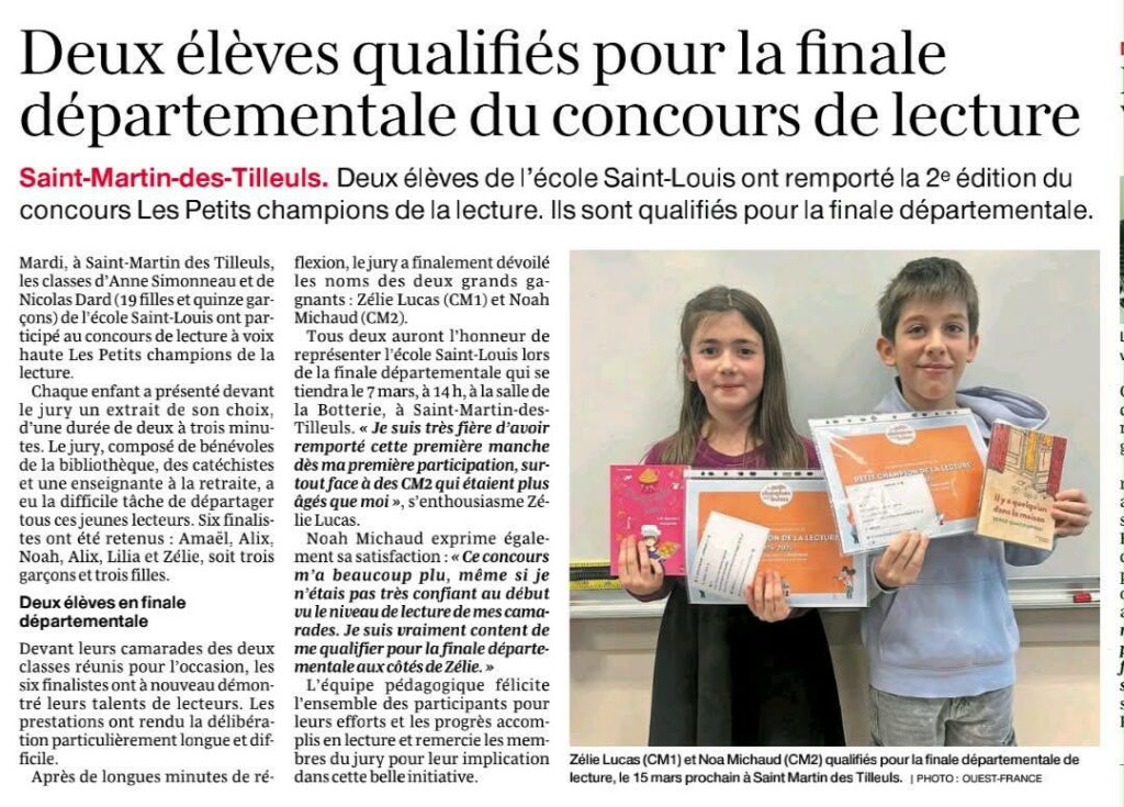 Depuis maintenant 4 ans, nos “petits” de maternelle ont la chance de découvrir des chants, des instruments et des jeux de voix grâce aux interventions de l’Institut Musical de Vendée. Ces animations ont lieu tous les jeudis, tout au long de l’année. Cette année, c’est Sarah qui intervient une fois par semaine pour le plus […]