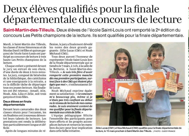 Accueil St Louis OGEC Posted on22 janvier 202622 janvier 2026 Eveil musical Temps Forts Posted on21 janvier 202621 janvier 2026 CE2-CM2 Posted on21 janvier 202621 janvier 2026 Spectacle musical Temps Forts Posted on18 décembre 202518 décembre 2025 Rencontres Temps Forts Posted on18 décembre 202518 décembre 2025 Célébration de Noël 2025 Contact Tel: 02.51.65.61.07Mail : direction@stmartindestilleuls-stlouis.fr Horaires 8h30 – 12h13h45 – 16h30 Menus